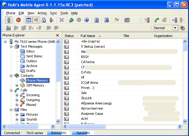 Есть возможность удаленно использовать телефон. Звонить по телефону, блокировать клавиатуру, отключать звук, пользоваться камерой. При этом программа позволяет сделать одиночный снимок или серию снимков с интервалом примерно в 20 секунд. Получается своеобразная web-камера, позволяющая, например, следить за соседним помещением. Главное, чтоб телефон был надежно замаскирован, а то еще унесут, придется потом по фотографии преступника искать. :) В заключение еще раз напомним, что перечислены лишь основные возможности программы. Для того чтобы перечислить все, уйдет слишком много времени. Поверьте, что программа на данный момент является одной из лучших для телефонов SonyEricsson. Единственным недостатком является отсутствие синхронизации записей календаря, но на этот случай можно воспользоваться стандартной XTND Connect из комплекта. В любом случае рекомендуем данный продукт для всех пользователей, которые синхронизируют свой телефон с компьютером, а особенно тем, кто использует для этого Bluetooth соединение. Список поддерживаемых телефонов: Изначально программа создавалась для телефона SonyEricsson T610, сейчас программой поддерживаются телефоны T68, T610, Z600, T630, K700i. Возможно, есть поддержка и других моделей, но за их отсутствием проверить работоспособность не представлялось возможным. Ссылка на сайт разработчика: http://fma.sourceforge.net Первая часть обзора