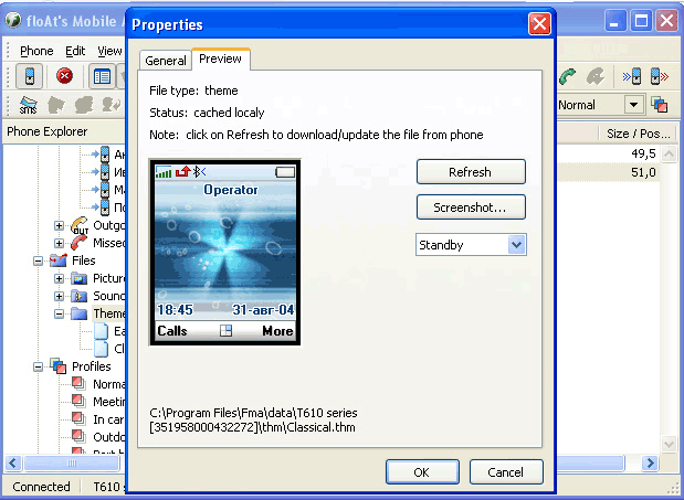 4. Files. Файл менеджер, позволяющий просматривать содержимое телефона и передавать файлы с компьютера на телефон и обратно. При этом можно просмотреть картинки, находящиеся в телефоне, прослушать мелодии и просмотреть темы.