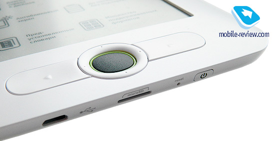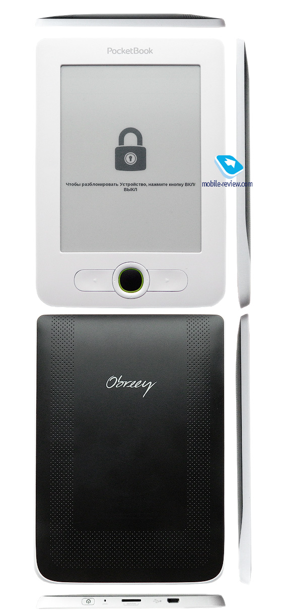 Книжка поставляется в очень компактной упаковке. Сама коробка выполнена в традиционных салатовом и белом цветах. Выглядит такое сочетание красиво и ненавязчиво. В комплекте традиционно ничего, кроме книжки и кабеля подключения к ПК, нет. ![]() ![]() Внешний вид, управляющие элементы, материалы, сборкаВ продаже будет две версии Basic New – черная и белая. У нас на тесте был именно белый вариант. Выглядит книжка почти так же, как обычный Basic. ![]() ![]() Основной используемый материал — матовый пластик, из него выполнена вся лицевая часть корпуса, крышка же, вне зависимости от цвета самой книги, имеет черный цвет. По крышке можно сразу же узнать продукт от PocketBook, у нее такая же форма, как и у крышек других читалок компании. Ее материал весьма трудно описать — с одной стороны, она матовая и шершавая, а с другой - на ней всё равно остаются отпечатки пальцев. ![]() На нижнем торце расположились разъём microUSB, кнопка включения со встроенным светодиодом, слот для карт памяти microSD и отверстие Reset. Как видите, разъём 3,5 мм для наушников отсутствует, всё-таки перед нами бюджетная модель. ![]() ![]() Под экраном находятся кнопки листания и пятипозиционный джойстик. У кнопок мягкий приятный ход, пользоваться ими очень удобно. При каждом нажатии вы слышите характерный щелчок. Джойстик также не вызывает нареканий. Меня немного расстраивает, что в PocketBook отказываются от боковых кнопок листания, по своему опыту могу сказать, что листать книгу с их помощью удобнее. С другой стороны, имеющиеся управляющие элементы выполнены на высоком уровне, намного лучше, чем в читалках от Ritmix и Digma. ![]() К сборке нет никаких претензий. Книжка отлично собрана, ничего не хрустит, не скрипит, не люфтит. ГабаритыПо размерам Basic New находится на уровне других шестидюймовых электронных книг, судите сами по списку ниже. Книжку удобно держать долгое время как одной, так и двумя руками.