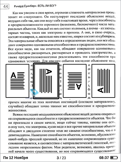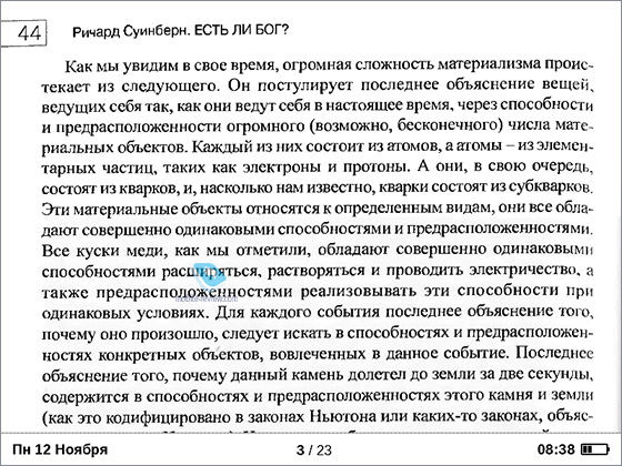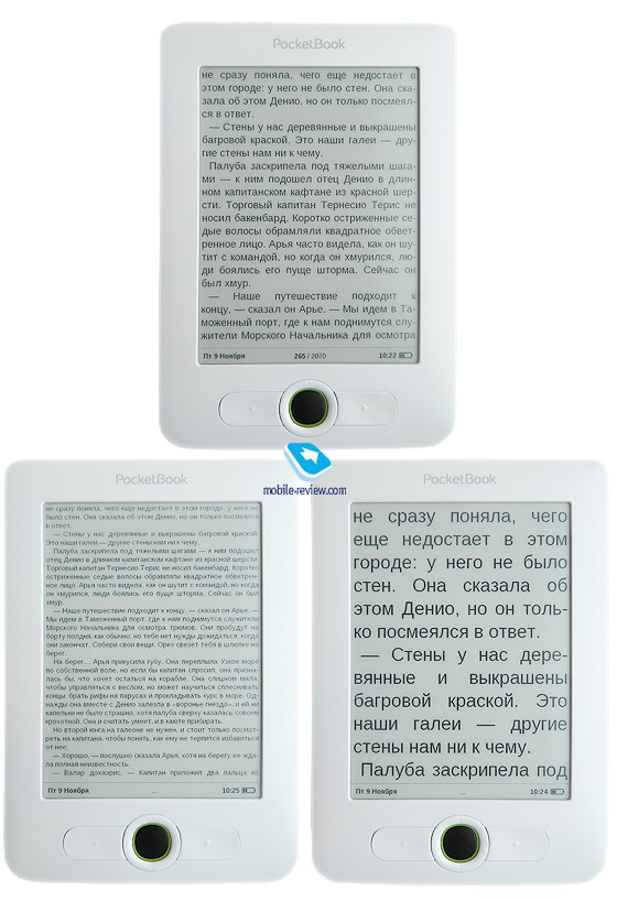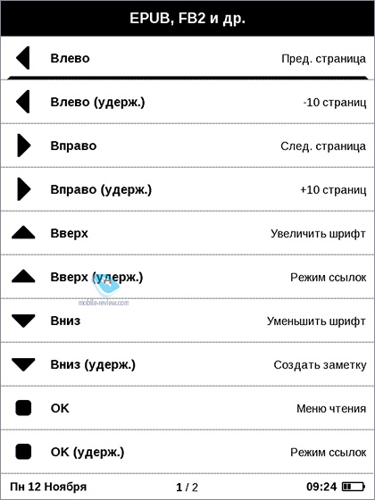 ![]() Шахматы В настройках вам доступна смена языка, вида клавиатуры, внешнего вида. Тут же настраиваются дата и время, а также осуществляется автоматическое включение режима USB-накопителя при подключении к ПК. ![]() ![]() ![]() ![]() ![]() ![]() ![]() Отдельно я бы отметил возможность задать действия на каждую из кнопок. Кроме кнопок листания, настраивается и джойстик, плюс, вы даже можете задать действие на долгое нажатие кнопки. Такая кастомизация мне очень понравилась. Помимо этого, вы также можете назначить снятие скриншота на одинарное или двойное нажатие кнопки включения. ![]() ![]() ![]() ![]() ![]() ![]() ![]() ЧтениеКнижка поддерживает все популярные форматы: FB2, DJVU, EPUB, MOBI, DOC, DOCX, RTF, PDF, TXT, а также zip-архивы с этими форматами. FB2, EPUB, MOBI, DOC, DOCX, RTF, TXT. Первое, что мне сразу понравилось — возможность быстро менять размер шрифта кнопками джойстика «Вверх» и «Вниз». ![]() ![]() Второе, о чем я уже многократно упоминал — потрясающая скорость работы. Страницы листаются настолько быстро, насколько это возможно. Из книги вы можете быстро просмотреть содержание или перейти по сноске, а также воспользоваться словарем. Никуда не делась и возможность делать заметки. ![]() ![]() ![]() ![]() ![]() В общем, Basic New поддерживает большинство возможностей, реализуемых в форматах FB2 и EPUB. Единственный недочет — при переходе по сноске вы не можете вернуться обратно на страницу, то есть вас возвращает на предыдущую сноску, надеюсь, что эту проблему решат в следующей прошивке. DJVU, PDF. Забавная ситуация, у большинства пользователей сложился стереотип, что читать PDF на 6” читалке неудобно из-за маленького размера букв и других неудобств. Однако в PocketBook приложили максимум усилий для того, чтобы вы могли комфортно читать PDF и DJVU со своей книги. Во-первых, здесь есть привычные режимы масштабирования: вы можете растянуть книгу на ширину экрана, обрезать поля, если они очень большие, или же отобразить страницу в исходном качестве. ![]() ![]() ![]() ![]() ![]() Но помимо этого, добавили режим колонок. Потрясающее нововведение. Не секрет, что есть много DJVU-файлов, где страницы отображаются по две. Именно для таких книг в PocketBook придумали режим колонок. Читалка «разрезает» текст на две части, и вы можете читать колонки поочередно. Функция отлично работает, и ей удобно пользоваться. ![]() ![]() ![]() ![]() ![]() Хваленая скорость Basic New хорошо прослеживается и тут — страницы прогружаются очень быстро. ЗаключениеСтоимость Basic New в рознице составляет 4 500 рублей. За эти деньги вы получаете качественную и быструю читалку с отличной поддержкой множества форматов. Кроме того, в Basic New есть множество маленьких приятных мелочей, начиная от возможности снятия скриншотов и заканчивая поддержкой режима двух колонок. Единственный недостаток модели — экран, но даже он не портит общего положительного впечатления от книги. ![]() КонкурентыDigma S605. Бывший флагман от компании Digma. Из преимуществ — лучший экран, комплектация. Недостатки — работает медленнее, ПО хуже. ![]() Ritmix RBK-600. Имеет сходные с Basic New характеристики, но стоит на тысячу дешевле. Из плюсов - опять же комплектация. Из минусов — намного хуже ПО, экран, по ощущениям, также хуже. ![]() Ritmix RBK-750. Помимо лучшего экрана и комплектации, у этой читалки также есть и клавиатура. ПО опять же уступает. ![]() Можно еще долго перечислять конкурентов, по факту достаточно ввести в Яндекс.Маркет два параметра: 6” E-ink экран и цена д