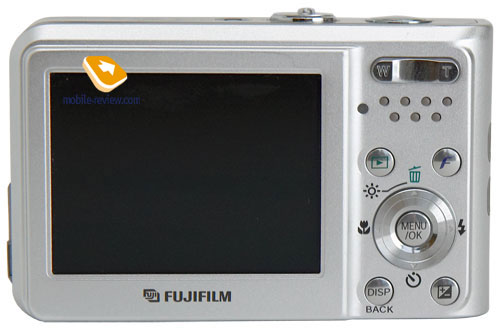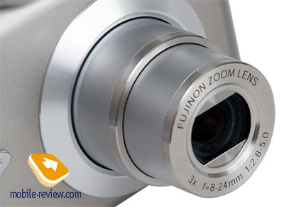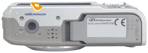 Фотоаппарат, о котором пойдёт речь в этом обзоре, был представлен 14 февраля, в День всех влюблённых. Вот такой своеобразный подарок решила сделать фотолюбителям компания FujiFilm. Новая камера Fujifilm FinePix F30 пришла на смену двум достаточно популярным моделям, Fujifilm FinePix F10/ F11.  Несмотря на то, что анонс состоялся ещё зимой, продажи стартовали только в конце мая, да и то на Туманном Альбионе. В наших краях пока нет-нет, да и покажутся предпродажные образцы. Один из них и попал к нам на испытания. Модель даже по заявленным характеристикам революционная. Главная её особенность – широкий диапазон ISO. Здесь она обскакала не только любительские камеры, с которыми непосредственно конкурирует, но и более дорогие полупрофессиональные модели. Максимально возможная чувствительность – ISO 3200 при полном разрешении кадра. Раньше установка высокой чувствительности у бюджетных моделей была сопряжена с уменьшением разрешения снимков. Не будем раздавать авансы, перейдём от слов к делу. Что таит в себе эта коробочка (пока ещё с надписью Sample – предсерийный образец) – попытаемся последовательно разобраться. Внешний вид и эргономикаФронтальная часть фотоаппарата из металла. Объектив телескопический, вспышка, насколько возможно, отнесена в сторону, под ней размещена лампа подсветки, практически у нижней грани корпуса – отверстия микрофона.     Вес фотокамеры немаленький – 185 грамм при размерах 92.7x56.7x27.8 мм. По габаритам в карман помещается, если вес не смущает, то можно считать её карманным вариантом, в противном случае лучше обзавестись специальной сумкой. На верхней грани минимализм – всего три управляющих элемента. Если смотреть слева направо, то первой идёт кнопка питания, за ней – селектор режимов работы и последней – кнопка спуска затвора.  Переключатель режимов работы камеры выполнен в виде диска с небольшим выступом. Положения фиксируются чётко. Диск не циклический. Размещён так, что обязательно подключение второй руки для его вращения. Нельзя назвать такое решение фантастически удобным, но и глобальных нареканий нет. А вот к работе кнопки спуска есть замечания. Она чересчур мягко нажимается. Вдобавок к этому, ход клавиши при первом полунажатии мал. Иногда это приводит к преждевременному срабатыванию затвора.       Традиционно основная часть элементов управления расположилась на задней панели фотоаппарата. Вот некоторые нюансы конструкции.     На мой взгляд, чуть ухудшилась эргономика качельки управления зумом, по сравнению с FinePix F11. Предшественница FinePix F30 имела небольшое углубление, которое позволяло пальцу более комфортно ложиться на клавишу. Нынешнее решение носит больше декоративный, нежели практический, характер. Кстати, лампочка-индикатор рядом также не совсем к месту. Во время съёмки палец её закрывает. Поэтому информативность данного элемента у людей с крупными пальцами стремится к нулю.     По сравнению с предшественницами, новинка обзавелась дополнительной клавишей, которая вызывает функцию экспокоррекции. Логично, удобно, жаль, что не во всех режимах её функционально нагрузили. Традиционной для всех камер FujiFilm является небольшая голубая кнопочка с буквой «f». Её нажатие инициирует переход в меню настройки параметров снимков (чувствительность (ISO), качество (разрешение и сжатие), цвет). В зависимости от режима работы камеры количеств