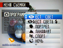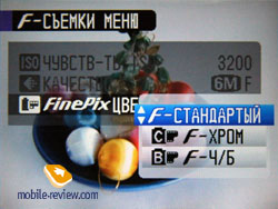 Функциональные возможностиФотокамеры Fujifilm пока не отличались особыми функциями в плане постобработки снимков. Эта модель не стала исключением. Возможно, это и правильно: не всем нужен графический редактор в камере, когда то же самое можно сделать на компьютере. Достаточно одного взгляда на селектор режимов, чтобы понять, что перед нами функционально насыщенный фотоаппарат. Логика организации самого диска немного сумбурна. Например, разработчики отдельно вынесли режим автоэкспозиции («М»), но приоритеты выдержки и диафрагмы объединили в одну группу. Здесь же можно отметить и другие спорные моменты. Это существенно не ухудшает эргономику, но некоторая непоследовательность присутствует. Более традиционен выбор сюжетных программ. На диск вынесен значок SP (сюжетные программы). Сами программы выбираются в меню. В списке 15 вариантов. В нём как традиционные (естественный свет (N), люди, пейзаж, спорт, ночь), так и уникальные, такие, как «естественный свет и вспышка» (в этом режиме камера делает два снимка подряд, один с использованием вспышки, другой – без). Достаточно любопытная возможность, в других камерах не реализованная.       Разработчики активно эксплуатируют в автоматических режимах широкий диапазон чувствительностей сенсора: так, на диске присутствует режим предотвращения смазывания снимков (достигается за счёт установки высокой чувствительности). К электронной стабилизации производители всё чаще стали прибегать уже давно. Наиболее активно её используют Casio и Fujifilm. Положительные отзывы следует дать системе автофокуса. Она умеет работать как в одиночном, так и в следящем режиме. По совокупности возможностей выглядит очень привлекательно для камеры такого класса. В одиночном режиме фокусировка может осуществляться как по фиксированной (центральной), так и по произвольной точке кадра. В последнем случае автоматика самостоятельно выбирает участок, который, по её мнению, должен оказаться в зоне резкости.   Экспозамер представлен тремя вариантами: точечным, средневзвешенным и мультисегментным. К сожалению, нет живой гистограммы для оценки правильности распределения яркостей снимка, однако есть возможность вносить экспокоррекцию +/- 2 Ev с шагом 1/3. Возможность установки выдержки в плюс есть даже в автоматических режимах, где наикратчайшей является 1/1000 сек, т. е. косвенно её можно сделать 1/2000 сек.   Возможности серийной съёмки хоть и представлены тремя режимами, но до скорострельности Canon A610 им далеко. В любом случае, они могут быть полезны при съёмке динамичных сюжетов.   Баланс белого состоит из стандартных пресетов (солнце, тень, лампы дневного света, лампы дневного света (тёплый оттенок), лампы дневного света (холодный оттенок), лампы накаливания) и одного пользовательского варианта (устанавливается по белому листу).     Фотоэффекты стандартны для камер FinePix: хром и черно-белое изображение. Как уже упоминалось, в меню просмотра набор функций постобработки минимален. До «графических редакторов», таких, как у Olympus SP-серии, этому экземпляру пока далеко. Но, опять же, не всем эти «навороты» нужны.   Просмотр снимка возможен как в режиме слайд-шоу, так и в ручном режиме. В мультикадровом режиме просмотра активный снимок чуть увеличивается в размерах относительно других. Так комфортнее рассматривать интересующее изображение, при эт