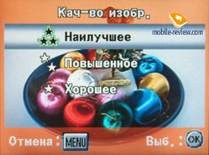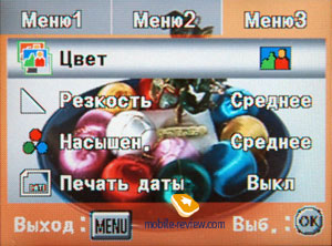 Есть возможность настройки степени сжатия снимков. Всего три уровня. Приятно, что нашлось место для параметров настройки качества снимков. Доступны эффекты: сепия и ч/б. Можно также настраивать резкость и насыщенность изображения. Камера поддерживает функцию впечатывания даты.