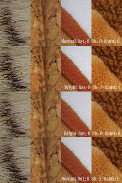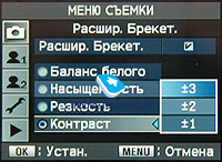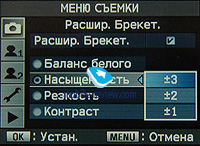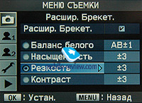 Далее для каждого из режимов были сделаны серии с различными вариациями установок насыщенности, резкости и контраста. Очень помог режим брекетинга по каждому из этих параметров (в том же меню доступна вилка баланса белого).