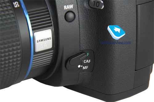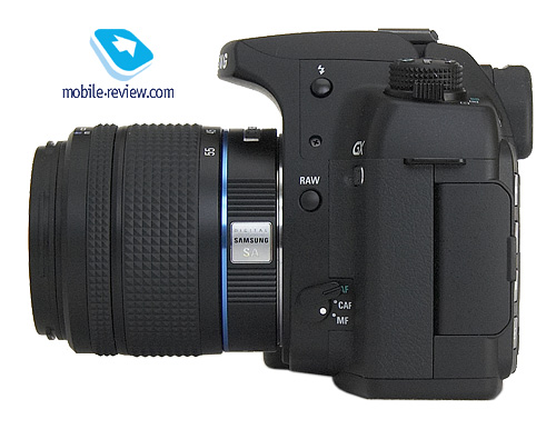 Ход клавиши спуска затвора мягкий. По моему субъективному мнению, в первом полунажитии ей не хватает тактильной обратной связи для обозначения этого самого половинного барьера. Каких-то проблем при съёмке это не создаёт. Но привыкание необходимо. Как и у предыдущих моделей Samsung/Pentax, кнопку спуска затвора обрамляет селектор питания, на который также возложена функция активации репетира диафрагмы. На мой взгляд, решение более удобное, чем отдельная клавиша где-то на корпусе.