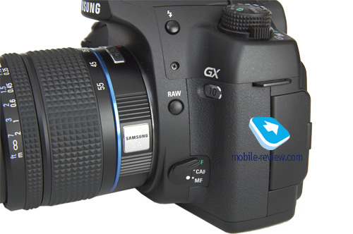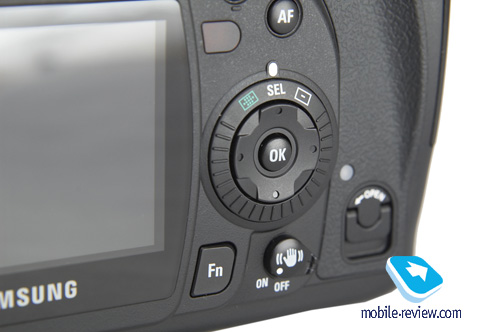 По сравнению с предыдущими моделями зеркалок Samsung/Pentax управление десяткой претерпело существенные изменения. Например, рукоятка обзавелась двумя управляющими колёсами (с фронтальной и тыльной стороны) вместо одного как раньше. К работе с ними привыкаешь быстро, к тому же в меню настроек есть возможность выбрать варианты их функциональности, причём для каждого из режимов съёмки.