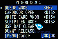3. Стрелкой вправо установить напротив DEBUG MODE - <EN>. Далее [OK], после того как изображение на экране пропадёт.