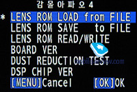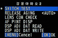 Эти действия лучше производить с новой прошивкой v1.10, так как в первой версии управление настройками автофокуса недоступно. Для того чтобы перейти в инженерное меню необходимо: 1. Включить камеру, одновременно удерживая [PLAY]+[OK] (на экране появится версия прошивки). 2. Не дожидаясь её исчезновения, нажать [Fn]->[Fn]->[INFO]->[MENU]. Появится экран сервисного меню.