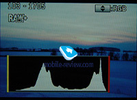 Режим просмотраРежимов просмотра всего два: быстрый (съёмочный) и обыкновенный. Оба имеют возможность вывода гистограммы и умеют отображать провалы в светах и тенях.