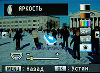 Подобной работой занялись и мы. Данные результаты были получены для китового объектива 18-55/3.5-5.5. Поэтому необходимо помнить, что с другой оптикой общая картина будет несколько отличаться от нашей. Первые серии показали, что в большинстве случаев более выигрышно смотрятся кадры, снятые в режиме Bright (меню съёмки первый пункт). Это подтвердило в очередной раз тезис о том, что более яркие изображения зрителем воспринимаются лучше.