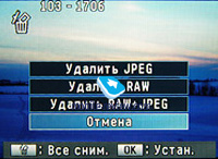 Удаление снимков тоже неплохо продумано. Например, если с RAW (DNG) кадром связан JPEG-файл, то камера предложит на выбор удалить пару либо отдельный снимок.