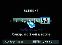 Но и это ещё не всё. Можно вручную произвести ещё более точную подстройку. Конечно, все эти ухищрения актуальны в том случае, если вы снимаете в JPEG. Сырой формат менее требователен к цветовой температуре, однако ряд специалистов придерживается мнения, что даже при съёмке в RAW настройка ББ лишней не будет. ФотовспышкаКамера имеет как встроенную фотовспышку (для её поднятия предусмотрена соответствующая кнопка) с ведущим числом 11 (при ISO 100), так и горячий «башмак» для установки внешней (рекомендуемые модели – SEF-54PZF, SEF-36PZF).