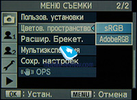 В завершение раздела необходимо упомянуть, что фотоаппарат поддерживает два цветовых пространства AdobeRGB и sRGB.