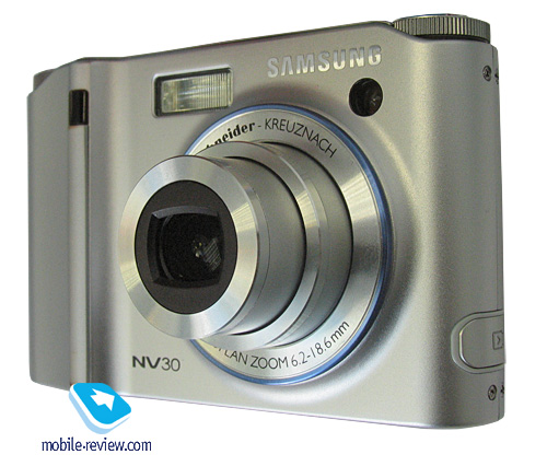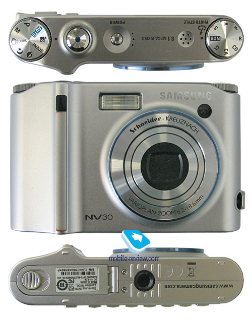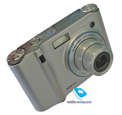 Обзор фотокамеры Samsung NV30К компании Samsung отношусь с большой симпатией еще со времен первых телефонов с цветным дисплеем. Неизгладимое впечатление на неокрепшую тогда еще психику произвела экспозиция технических достижений производителя — приглушенный свет, матовый металл, огромные, как тогда казалось, плазменные панели, живописующие небесных созданий в развивающихся одеждах, на бархате стендов — многочисленные новинки в потрясающем футуристическом серебристом корпусе… 2002 год. Все же всегда умел производитель правильно преподнести свою продукцию, проассоциировать ее с правильными вещами, спроецировать на самые желанные качества. Нельзя экономить на образе. И это окупается. Развитие направления GSM более чем наглядно. Динамика развития направления аудио также заметна. Да и фото производителем не забыто. Новинки в стане цифровых компактов яркие внешне, адекватные потребностям рынка функционально, предлагают необычный подход, многочисленны и имеют дорогую рекламную поддержку. Отметить стоит и динамику — далеко не все из перечисленного имело место быть пару лет назад. Предпосылки для успешного развития направления налицо. Впрочем, оставим составление прогнозов аналитикам и поговорим более предметно. Сегодня на повестке дня новинка серии «серьезных» компактов — NV30. Первое знакомство прошло удачно. Внешний вид камеры нравится сразу. Не разочаровывают и первые прикосновения. Холод корпуса и характерная тяжесть в руке выдают обилие металла. Мне нравятся тяжелые аксессуары. В ощутимом весе есть привкус добротности, осознанного подхода, некоторой зрелости, что ли. Хотя, конечно, что и говорить, дело вкуса. ![]() Многочисленные изгибы линий корпуса напоминают тяжелую драпировку. В общем, смотрится красиво. В реальности камера выглядит интереснее, чем на снимках. В целом корпус NV30 имеет одно ощутимое утолщение — это ручка, выступающая над передней панелью в левой части корпуса. Ручка — это всегда хорошо. Есть за что зацепиться, точнее, куда упереться. А еще факт ее существования упрощает съемку одной рукой. Общее расположение камеры в руке комфортно. Не последнюю роль в этом играет расположение центра тяжести. Его упор приходится на несущую линию правой руки. ![]() Большая часть корпуса выполнена из серебристого матового металла. Другую фактуру имеет только металлическая окантовка дисплея. Она более ребристая. Качество сборки корпуса находится на высоком уровне. Зазоры, насколько возможно, минимальны. Люфт отсутствует. Индикатор качества корпуса цифровой камеры — крышечка аккумуляторного отсека. К NV30 по этой части претензий нет. Крышка плотно прилегает к корпусу, механизм защелки срабатывает четко, качество исполнения соответствует общему уровню. ![]() Рассмотрим расположение органов управления. Они разнесены по двум плоскостям — задней и верхней панелям. На задней панели вдоль линии дисплея расположились четырнадцать функциональных кнопок системы Smart Touch. Правее — удлиненная клавиша зуммирования и ушко для ремешка на руку. В самом верху задней панели находится индикатор состояния камеры. ![]() На верхней панели традиционно расположилась кнопка питания и клавиша спуска. Справа, под большим пальцем, находится колесо выбора режимов съемки. Симметрично слева — селектор стиля съемки и динамик. В центральной части верхней п