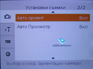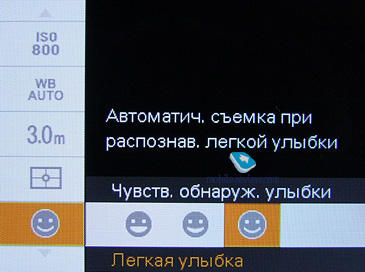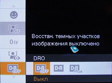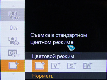 Теперь давайте пройдемся по меню камеры. Возможные разрешения съемки фотографии: 10, 5, 3, 0.3 мегапикселя при соотношении сторон 4:3, 8 мегапикселей при стандартном соотношении 3:2 и при широкоформатном - 7 и 2 мегапикселя. ![]() Возможна серийная съемка по три кадра с шагом выдержки 0.3, 0.7 и 1 EV. ![]() Регулировка яркости возможна по шкале от -2 до 2 с шагом 1/3. Значение ISO регулируется в пределах от 80 до 800. На официальном сайте также заявлены значения 1600 и 3200, но в настройках аппарата их просто нет. ![]() ![]() Баланс белого: Авто, дневной свет, облачный, Флуоресцентный свет 1, Флуоресцентный свет 2, Флуоресцентный свет 3, Лампа накаливания, вспышка, одно касание, настройка одного касания. ![]() ![]() Фокус: мульти AF, Центр AF, Пятно AF, 1, 3, 7 метров и бесконечность. ![]() ![]() Экспозиция: Мульти, Центр, Пятно ![]() Чувствительность обнаружения улыбки: Легкая, Обычная, Широкая. ![]() Распознавание лиц: выключено, авто, приоритет детей, приоритет взрослых. Уровень вспышки регулируется по шкале от 2 до -2 с шагом в 1/3. ![]() Уменьшение эффекта красных глаз: Авто, Включено, Выключено ![]() Восстановление темных участков изображения (DRO): Выключено, Стандарт, Плюс. ![]() Цветовой режим: Нормальный, Яркий, Сепия, Черно-белый. ![]() Примеры работы функции: