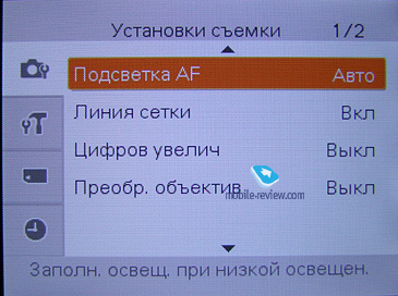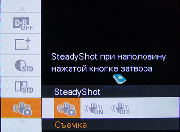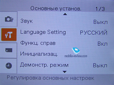 Steady Shot (стабилизация изображения): Съемка (работает только при нажатой кнопке затвора), Непрерывная, Выключена. ![]() В настройках самого аппарата можно выключить подсветку автофокуса и координатную сетку, выбрать режим работы объектива (нормальный, теле, крупный план, широкий угол), отключить автоориентацию фотографий и автопросмотр. Конечно же, есть настройки языка и звука, настройки видеовыхода. ![]() ![]() ![]() ![]() ![]() ![]()