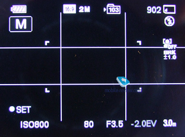 В режиме "Авто по программе" появляется настройка ISO. Можно устанавливать значения от 80 до 800 и авто. ![]() ![]() Самым богатым режимом здесь будет "Съемка с ручной экспозицией", обозначенный на диске буквой "M". В этом режиме вы можете регулировать время выдержки и значение диафрагмы. ![]() Для последних четырех режимов можно регулировать количество отображаемой информации: