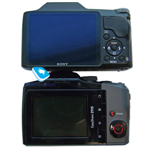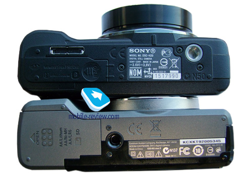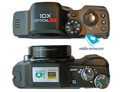 На лицевой стороне помимо объектива есть отверстия для микрофона, светодиод автофокусировки. Большую часть тыльной стороны занимает дисплей, прикрытый защитным стеклом. Справа находится блок управления устройством. Четырехпозиционная навигационная клавиша, на которую "повешены" функции активации вспышки, макрорежима, съемки по таймеру и отображения информации на дисплее. В центр этой клавиши вписана кнопка подтверждения выбора. Внизу можно видеть кнопку меню и удаления, а вверху - кнопку режима просмотра. На верхнем торце над объективом спрятана вспышка. Правее нее - кнопка включения устройства, клавиша функции распознавания улыбки, кнопка спуска затвора с рычагом привода трансфокатора и диск выбора режима работы. ![]() Интерфейсный проприетарный разъем, крышка, за которой находятся батарея и разъем для карты памяти, расположены на нижнем торце. Тут же - крепление для штатива. ![]() ![]() ![]() ![]() ![]() ![]() На левом и правом торцах есть крепления для ремешка объектива и ремешка переноски. ![]() С материалами все хорошо. Использован приятный на ощупь пластик, немного шершавый, устойчивый к царапинам и прочим повреждениям. Точно такой же материал мы можем видеть в камере Sony DSC-HX1. Камера собрана прекрасно. Под правую руку на корпусе есть вставки из твердой резины, аппарат не скользит в руке. Внешнее кольцо объектива из металла, внутренние - пластмасса. Все элементы управления также пластиковые. Динамик камеры спрятали под резиновой накладкой на тыльной стороне - интересная находка, но заглушить звук рукой не получается. Впрочем, в меню его можно отключить. ![]() ![]() ![]() ![]() ![]() ![]() ДисплейЭкран камеры прикрыт защитным "стеклом" с антибликовым покрытием. Точно такое же мы могли видеть в камере Sony DSC-HX1. Диагональ дисплея - три дюйма, разрешение - 960*240 (230 400 пикселов). Зернистость присутствует, но ее не замечаешь, если не вглядываться специально. На солнце экран слепнет, но информация читается. ![]() ![]() Эргономика, удобство съемки и скорость работы устройстваКак я уже говорил, на корпусе есть выступ под правую руку - камеру держать удобно. Резиновые вставки на корпусе в месте хвата не дают камере "скользить" в руке. Эргономика также продумана - управляться можно одной рукой, благо позволяет вес и расположение элементов управления. Единственный неприятный момент - диск выбора режимов съемки, расположенный прямо на углу. Переключать его большим пальцем можно, но приходится тянуться. Хотелось бы его сместить чуть-чуть влево. ![]() Ход клавиш, расположенных на тыльной стороне, короткий, к нему придется привыкнуть. Из-за того, что элементы управления сделаны почти вровень с корпусом, пользоваться ими в перчатках не очень удобно, но возможно. ![]() Кнопка съемки самая обычная, двухпозиционная, удобная, как и в большинстве фотоаппаратов. Первый по-настоящему неприятный момент в процессе использования - крышка объектива. Во-первых, на ней нет никаких защелок, она просто насаживается на объектив. Держится плотно, нареканий к этому нет, но к чему она? За долгое время использования цифрокомпактов я так привык к автоматическим шторкам... Тут же приходится каждый раз ручками ее снимать и ручками надевать. Вроде бы мелочь, но в процессе использования, я думаю, вы поймете и согласитесь со мной. Второй момент: если вы не сняли крышку объектива, но успели включить аппарат, то объект