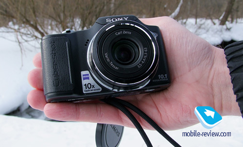 ВведениеПосле довольно удачной линейки H10 и H50 Sony выпустила продолжение в виде компакта H20. Сразу скажу, что аппарат мне нравится по множеству причин, и в качестве любительского он очень удобен. Встречается множество мнений по поводу того, что камеры этой фирмы дают плохое качество картинки. Не берусь судить все аппараты, но конкретно про этот скажу, что ничего скверного на фотографиях я не вижу. В конечном итоге мнение конкретного пользователя зависит от его ожиданий. На своем примере я убедился в том, что каким бы хорошим и качественным ни был ультразум, ему очень далеко до зеркалки. В надежде получить все за мало денег я купил Fujifilm S100FS, и если говорить об управлении, то да, оно максимально схоже с таковым у зеркальных аппаратов, но качество фото значительно уступает. И про ультразумы вообще, и конкретно про Sony могу сказать следующее: это именно любительские аппараты, их покупают для съемки себя, семьи, природы, отдыха. Здесь бесполезно говорить об узком динамическом диапазоне, проблемах оптики и цифровых шумах, все это присутствует даже в ультразумах стоимостью более 20000 рублей. В конечном итоге покупатель должен сам оценить качество фото и сделать простой вывод - нравится/не нравится. Все остальное вторично. На первом же месте стоят возможности конкретной модели, качество картинки в самых различных режимах съемки (чтобы не "мазала"), скорость работы, удобство, эргономика, видео и прочие режимы (панорама, например). Это мое личное мнение, но, право слово, я считаю глупым сравнивать шумы при различных ISO для любительских фотокамер. Есть две характеристики, доступные неискушенному пользователю, - нравится или нет. Впрочем, хватит лирики, душу излил, поэтому продолжим. Внешний вид, материалы, габаритыПо размерам камера очень напоминает цифрокомпакт, если бы не солидных размеров объектив, который сказался и на весе устройства.
