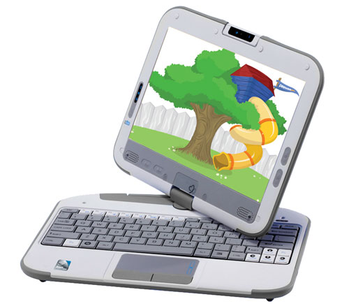 Устройство создано в форм-факторе планшета-трансформера, что позволяет его более гибко адаптировать под конкретные нужды ребенка. Ноутбук PeeWee Pivot 2.0 может функционировать в режиме планшета, а его 10,1-дюймовый экран рассчитан на работу с разрешением 1024 x 600 точек, хотя имеется возможность и использовать более высокое разрешение 1366 x 768 пикселей. Модель оснащена веб-камерой и имеет интегрированную графику Intel UMS. Процессор, положенный в основу модели, - Intel Atom N450 и, строго говоря, она должна считаться нетбуком. Работает под управлением ОС Windows XP Home, но поддерживается и Linux. Ноутбук PeeWee Pivot 2.0 оснащен стандартными интерфейсами WiFi 802.11b/g/n, Ethernet и Bluetooth. Дополнительно имеются специальные программы родительского контроля, а экран и клавиатура защищены от пролития жидкостей.