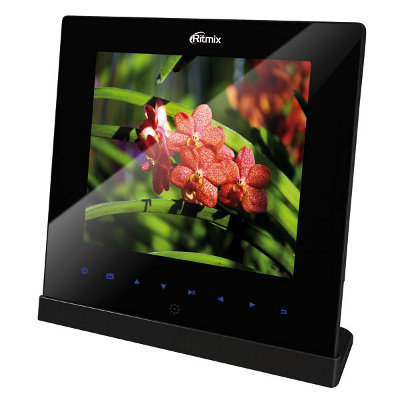 Толщина фоторамки составляет всего 12 мм, что позволяет повесить ее на стену. Сенсорные кнопки управления находятся на передней панели устройства, это упрощает его использование. RDF-805 обеспечивает показ фотографий, воспроизведение аудио и видеофайлов. Дополнительные программные функции устройства включают часы и календарь. Фоторамка Ritmix RDF-805 доступна для приобретения на российском рынке.