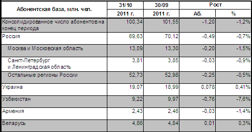 Оператор мобильной связи МТС объявил консолидированное число абонентов компании по состоянию на 31 октября 2011 года.