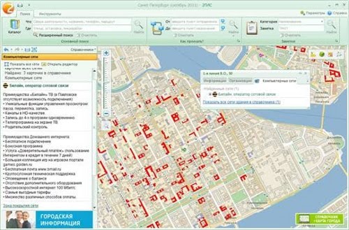 Пользователи электронного справочника 2ГИС Санкт-Петербург могут посмотреть, в каких домах уже доступна услуга Домашний Интернет «Билайн». Для этого достаточно кликнуть по интересующему зданию на карте города и на появившейся информационной карточке выбрать вкладку «Компьютерные сети». Открыв ссылку «Зона покрытия сети», можно увидеть все здания, которые подключены к Домашнему Интернету.