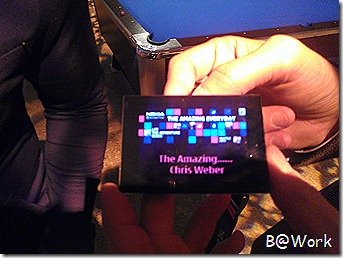 В Интернет попали снимки загадочного электронного устройства Nokia с 3-дюймовым сенсорным дисплеем и без кнопок на лицевой панели. Сначала считалось, что это какой-нибудь новый смартфон или миниатюрный планшет, который покажут на выставке CES 2012 в начале января, но затем ресурс BooredatWork, опубликовавший фото, узнал, что это просто электронный программируемый бейдж. Очевидно, ими будут снабжать представителей Nokia на выставке - так, на фото видно, что на экране проставлено имя - Крис Вебер (Chris Weber), это глава Nokia в США. Отметим, что BooredatWork сделал фотографии на пресс-конференции Nokia и T-Mobile, посвященной анонсу Lumia 710.![]()
