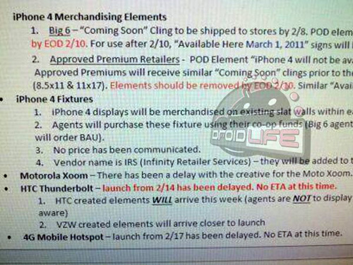 Компания HTC в самый последний момент задерживает выход своего 4G смартфона Thunderbolt. Модель должна была поступить в продажу у оператора Verizon Wireless 14 февраля, но теперь срок релиза отодвинут на неизвестное время. При этом одновременно стало известно, что следующая партия iPhone для данного оператора появится уже 1 марта. Такая ситуация выглядит для HTC не самым лучшим образом, поскольку напрямую будет влиять на продажи модели Thunderbolt.