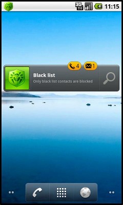 С помощью виджета рабочего стола пользователь может мгновенно определять текущий режим работы программы, переключаться между режимами, получать информацию о пропущенных вызовах или SMS — и для этого не приходится запускать Dr.Web для Android специально.