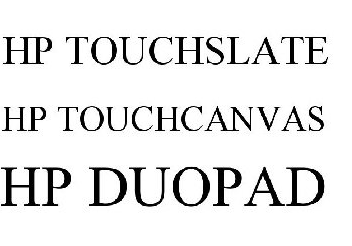 Компания Hewlett-Packard подала в Офис Патентов и Торговых марок США (USPTO) заявку на регистрацию марок HP Duopad, HP Touchslate и HP Touchcanvas. Напомним, ранее она регистрировала PalmPad и HP Touchpad. По всей видимости, HP выбирает название для своих будущих планшетов. Можно предположить, что не все из этих наименований будут использоваться, просто компания решила на всякий случай зарегистрировать несколько возможных вариантов.