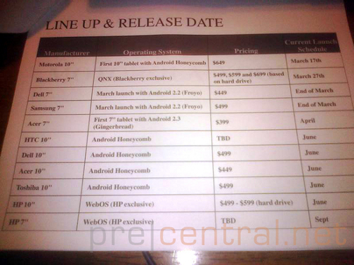 Появились сведения о сроках выпуска и цене планшетов Hewlett-Packard. Причем, речь идет не только об уже анонсированной модели HP TouchPad, но и о планшете, известном лишь по слухам - HP Opal. В документе, опубликованном PreCentral, упоминается множество планшетов различных производителей, в том числе, и HP. Там сообщается, что 9,7-дюймовая модель HP TouchPad поступит в продажу в июне этого года. Планшет будет стоить $499 или $599 в зависимости от объема встроенной памяти - 16 или 32 ГБ соответственно.
