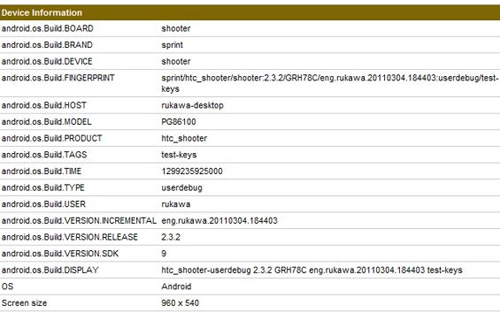 На сайте GLBenchmark были замечены результаты тестирования некоего устройства HTC с кодовым именем Shooter. Модель без сомнения относится к топовым решениями, поскольку работает под управлением ОС Android 2.3.2 и имеет экран с разрешением 540x960 точек. Кроме того, о нем известно, что аппарат построен на платформе от компании Qualcomm и оснащается графическим ускорителем Adreno 220, что означает использование чипсета Snapdragon. Предположительно речь может идти об одной из новых двухъядерных моделей MSM8660 с тактовой частотой 1,2 ГГц. Устройство предназначено для североамериканского оператора Sprint и вероятно является прототипом HTC EVO 3D.