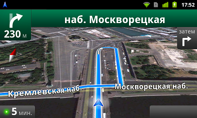 Во-вторых, Google Навигация учитывает текущую загруженность улиц и прокладывает маршрут с учетом пробок. При этом выбор всегда остается за вами - сервис может предложить три маршрута на выбор и покажет время движения по каждому из них. В-третьих, мобильные Карты обновляются автоматически и всегда совпадают с последней версией Карт Google, которую вы можете найти на странице maps.google.ru.