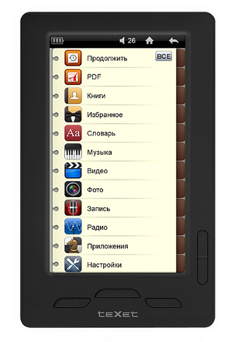 teXet представила две новых электронных книги - teXet TB-430HD и TB-470HD. Они, правда, поддерживают не только текст, но и аудио, видео и картинки и оснащены цветными сенсорными TFT-дисплеями и вполне достойны звания медиаплееров. Экран teXet TB-430HD 4,3-дюймовый, а teXet TB-470HD - 4,7-дюймовый. teXet TB-470HD комплектуется стилусом и выполнен в двух цветовых решениях - черном и белом, зато у teXet TB-430HD есть радио. Устройства поддерживают загрузку шрифтов в формате TTF, а также чтение книг и просмотр фото с музыкальным сопровождением (многозадачность). На тачскринах этих ридеров также можно делать рукописные заметки. Рекомендованная розничная цена teXet TB-430HD и teXet TB-470HD составляет 2799 рублей и 3199 рублей соответственно.