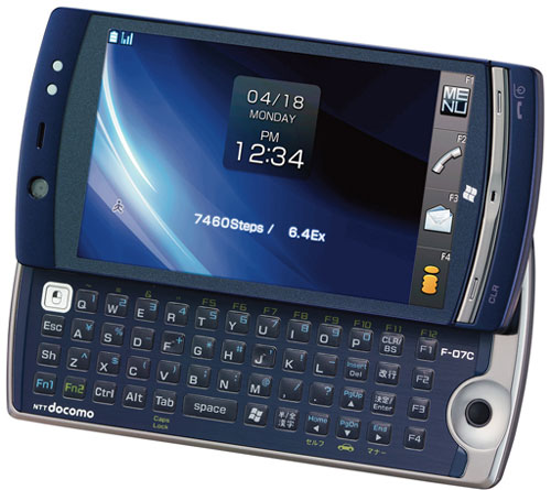 F-07C выполнен в форм-факторе бокового «слайдера» с выдвижной QWERTY клавиатурой, и имеет следующие характеристики (в режиме мобильного телефона):