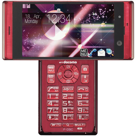 F-09C выполнен в форм-факторе «слайдер» с поворотным сенсорным 3,5-дюймовым 3D дисплеем, а его корпус имеет защиту от попадания воды. Для съемки фотографий используется 16,3 МП КМОП камера, позволяющая также вести видеосъемку в разрешении Full HD.