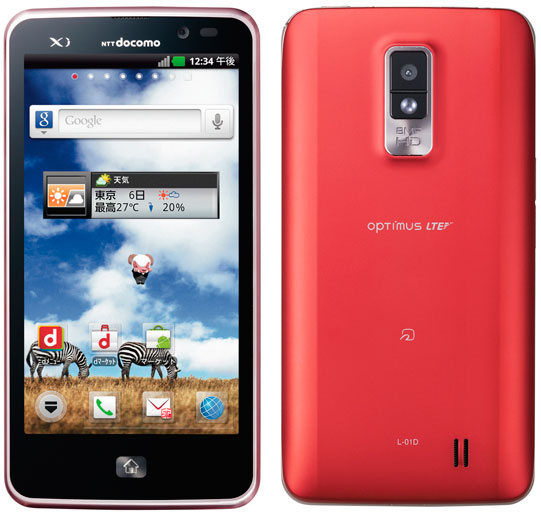 Optimus LTE L-01D, производства южнокорейской компании LG Electronics – это японская версия ранее анонсированного Android смартфона LG Optimus LTE, оснащенного 4,5-дюймовым HD IPS дисплеем с разрешением 1280х720 точек, 1.5 ГГц двухъядерным процессором Qualcomm APQ8060 и поддержкой LTE сетей. От оригинальной модели японскую версию отличает, кроме интерфейса, наличие встроенного цифрового ТВ-тюнера, принимающего сигналы в стандарте one-seg и бесконтактной платежной карты (FeliCa), основанной на технологии NFC.