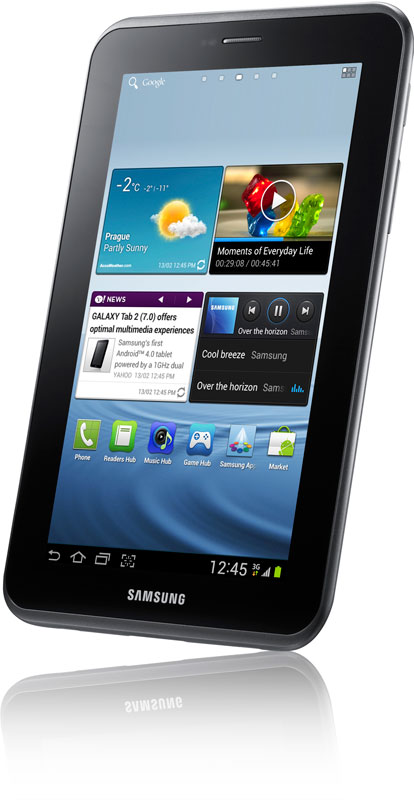 Южнокорейская компания Samsung Electronics представила новый планшет Samsung Galaxy Tab 2 (7.0), оснащенный семидюймовым сенсорным экраном и работающий под управлением операционной системы Android 4.0 (Ice Cream Sandwich).