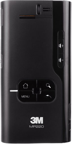 Мобильный проектор 3М МР220 имеет мощность светового потока 50 лм, разрешение WSVGA и время работы от батареи 2 часа. Благодаря наличию встроенной памяти в объеме 2 Гб, а также возможности подключения внешних карт памяти формата MicroSD, проектор позволяет с легкостью загружать и хранить информацию прямо на нем, тем самым избавляя сотрудника, отправляющегося в командировку, от необходимости брать с собой лишний груз в виде ноутбука или иного устройства.