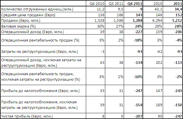 Компания Sony Ericsson представила финансовые результаты за 4-й квартал 2011 года, а также результаты за весь 2011 год. В представленном отчете отмечается, что потери в 4-м квартале отражают острую конкуренцию, снижение цен и расходов на реструктуризацию. В тоже время отмечается 65-процентный рост в годовом сравнении смартфонов Xperia.