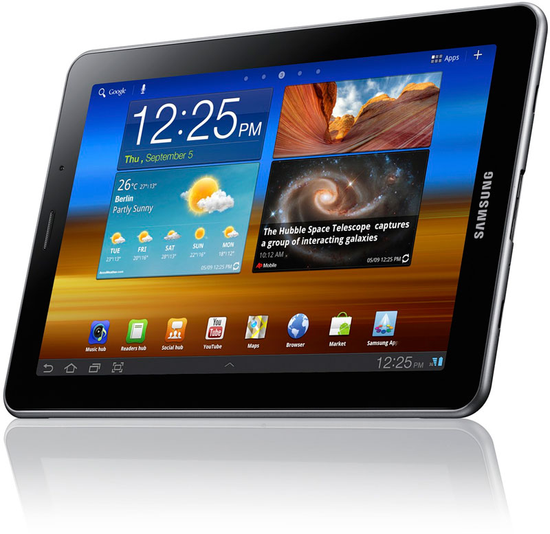 Напомним, что Samsung Galaxy Tab 7.7, работающий под управлением операционной системы Android 3.2 Honeycomb, оснащается двухъядерным процессором с частотой 1,4 ГГц, фирменным интерфейсом Samsung TouchWiz c виджетом Live Panel для персонализации рабочего стола и панелью Mini Apps с диспетчером задач, календарем, музыкальным проигрывателем, которые можно запускать во время работы других приложений.