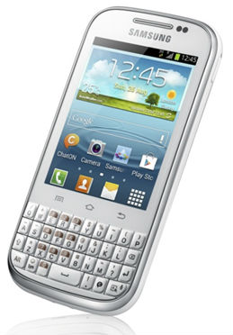 Южнокорейская компания Samsung Electronics официально представила новую модель смартфона Samsung GALAXY Chat, работающего под управлением операционной системы Android 4.0, отличительной особенностью которого является наличие у него под 3-дюймовым сенсорным экраном «железной» QWERTY клавиатуры.