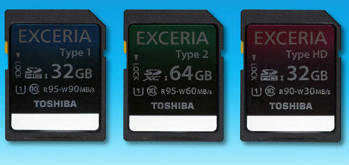 Для более старых моделей, не использующих возможности интерфейса UHS-I, пользователь может рассчитывать на минимальную скорость передачи данных, соответствующую 10-му классу. Карты Toshiba EXCERIA HD представлены в версиях 8 Гб, 16 Гб и 32 Гб.
