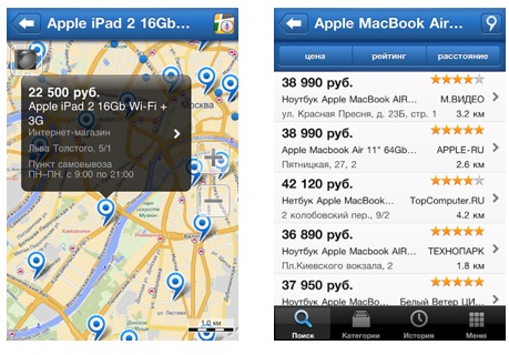 Появилась обновленная версия приложения Яндекс.Маркет для iPhone (точнее, платформы iOS и всех устройств на ее основе). Как сообщают разработчики, новая версия приложения под номером 1.1 умеет показывать магазины на встроенной карте и сортировать товары по расстоянию до них.