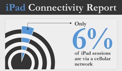 От общего числа зарегистрированных iPad только 1,5% поддерживают сети 4G LTE и 8,8% имеют 3G модуль, а подавляющее большинство, 89,7% планшетов, являются устройствами только с поддержкой исключительно Wi-Fi. На долю всех подключений устройств к Интернету на долю мобильных сетей приходятся 6%, то есть даже не все устройства с 4G и 3G модулями используются постоянно для работы в операторских сетях. Любопытно, что статистика процентного соотношения Wi-Fi и мобильных сетей различна для 3G и 4G устройств. При наличии 3G модуля на долю использования такого типа соединения для подключения к Интернету приходится 45%, а в случае наличия 4G, то только 36%. Связано это расхождение может быть с меньшей зоной покрытия сетей LTE.
