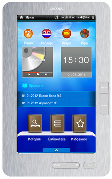 В качестве дополнительных бонусов выступают уже традиционные для мультимедийной продукции teXet приложения: англо-русский и русско-английский словари, игры ("Пять", "Ящики", "Тетрис" и "Сянци"), часы, календарь и калькулятор. Кроме того, пользователю доступны радио и диктофон с записью в формате MP3. Нижняя грань новинок оснащена микрофоном, гнездом 3,5 мм для наушников, портом miniUSB, слотом для карт microSD/SDHC (до 32 ГБ) и разъемом для сетевого адаптера. Шлифованный металл придает дизайну ридеров оригинальность и дополнительно защищает устройства от механических повреждений. Доступно три цветовых решения корпуса: серый, серебристый и коричневый. Рекомендованная розничная цена teXet TB-760HD составляет 2999 рублей, а TB-860HD - 3699 рублей.