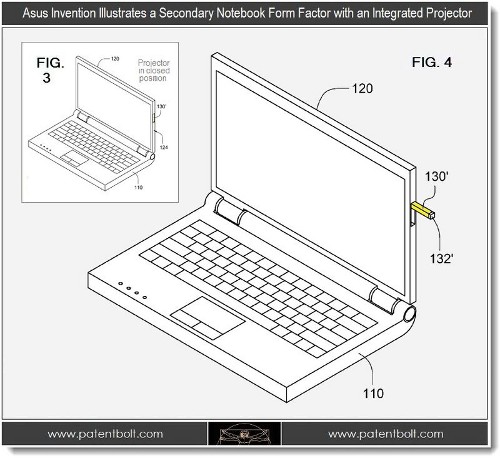 Компания ASUSTeK Computer, вполне возможно, в будущем выпустит ноутбуки со встроенным проектором. По крайней мере, такие устройства упоминаются в ее патентной заявке, которая была подана еще год назад, но выложена в открытый доступ лишь недавно. При этом, компания предлагает различные способы установки мини-проектора в корпус портативного компьютера: они раскрываются в приложенных к документации эскизах.