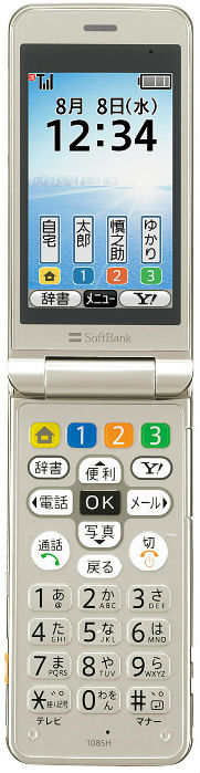 Замыкает линейку мобильных телефонов последнего анонса SoftBank Mobile, мобильный телефон SoftBank 108SH производства компании Sharp, специально предназначенный для пожилых людей. Для этих целей данная новинка оснащена крупными кнопками, тремя отдельными клавишами доступа к основным функциям, упрощенным меню с подсказками, а также тройной системой улучшения звука, включающая в себя системы шумоподавления с микрофона и динамика, а также системой эхокомпенсанции. Кроме того, раскладной корпус SoftBank 108SH выполнен в пыле и водонепроницаемом исполнении.