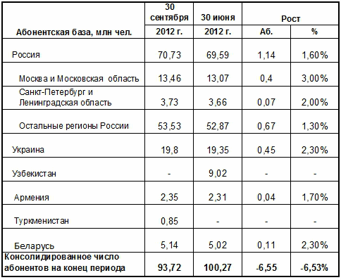Оператор мобильной связи МТС объявил, что его консолидированная абонентская база по итогам третьего квартала 2012 года выросла на 2,7%.